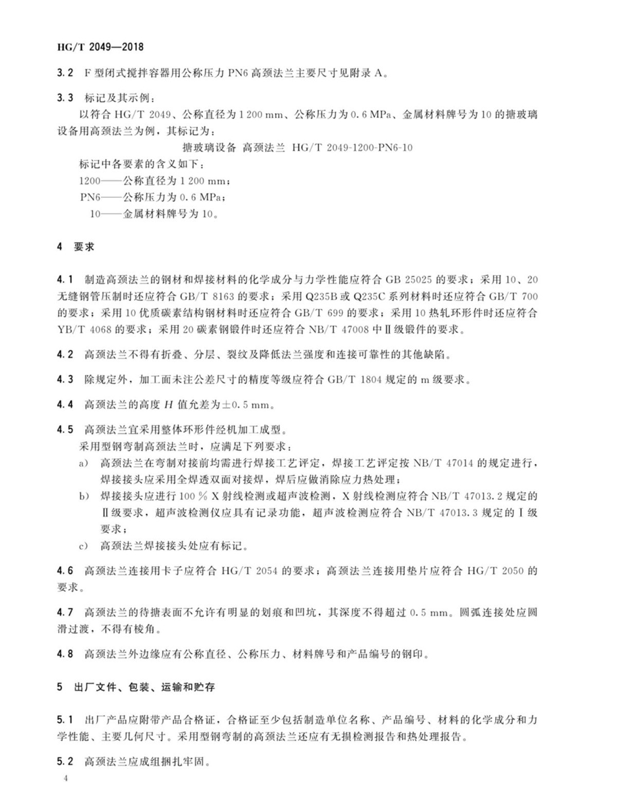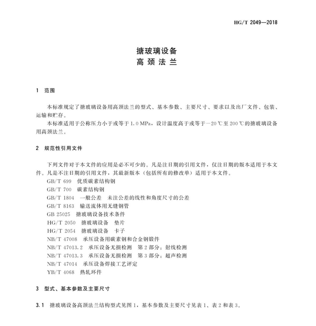 HG-T-2049-2018搪玻璃設備高頸法蘭