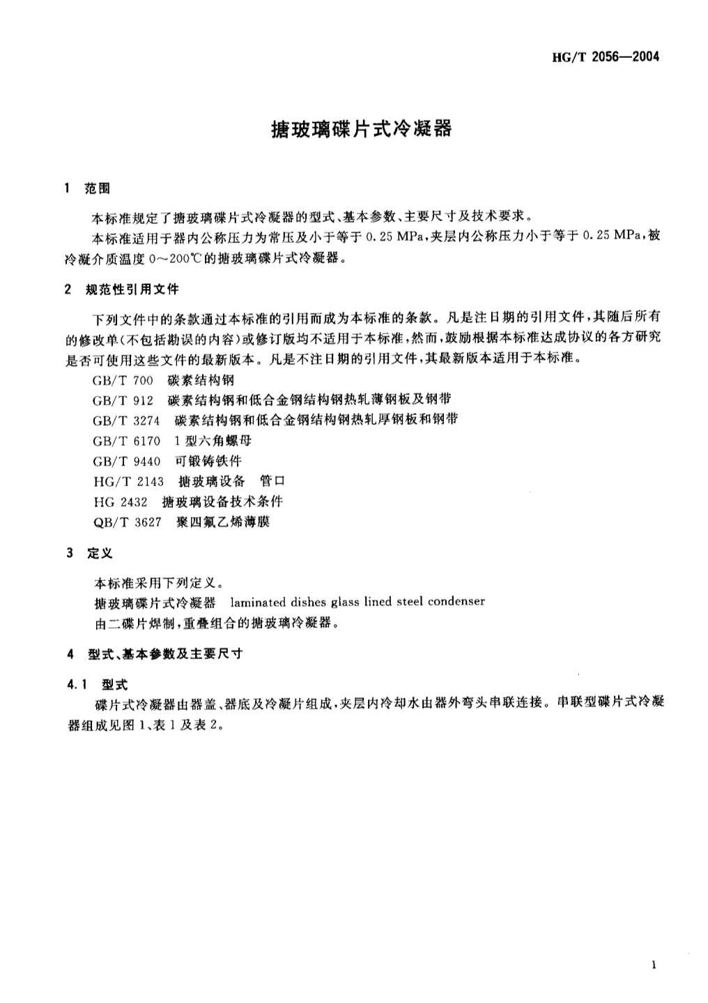 HG-T-2056-2004搪玻璃碟片式冷凝器
